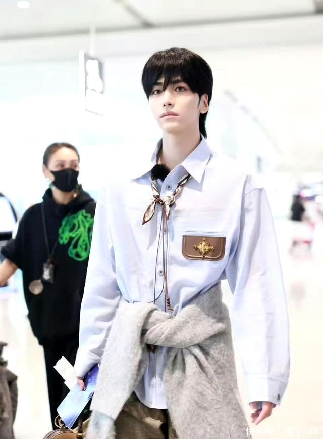 柯淳则是帅气男大即视感,休闲套装加身,全靠长相和身材支撑,由于个头高挑,走在人群里也很有辨识度。