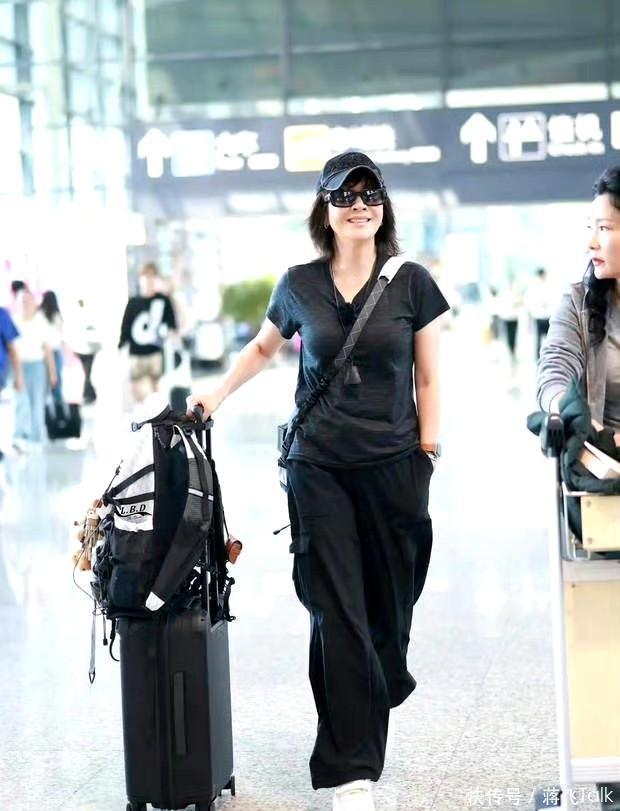 刘嘉玲则是一身黑色套装霸气十足,亮相机场时走路都是带风的。